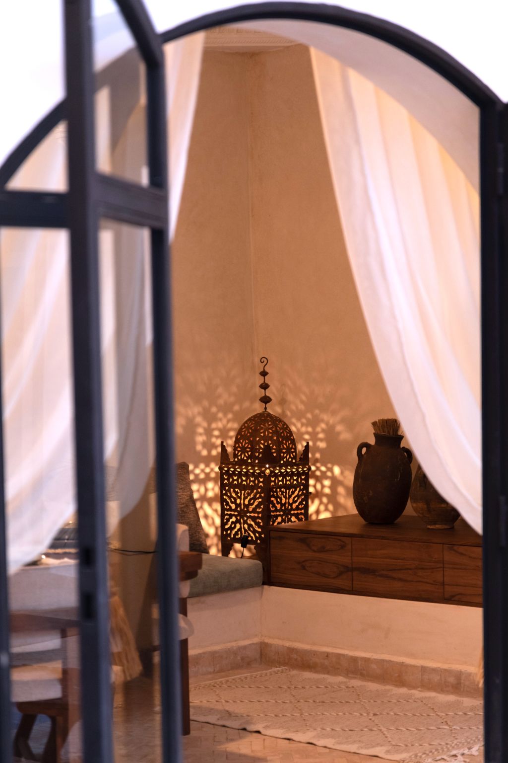 Plongez dans l’atmosphère du Riad Sumud et laissez-vous séduire par l’harmonie des lignes, la douceur des matières et l’élégance discrète d’un riad pensé pour le calme et le confort.
